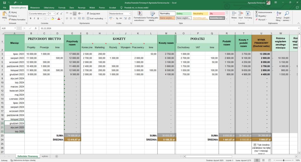 ✔ ile realnie co miesiąc wydajesz na koszty firmowe czy podatki;