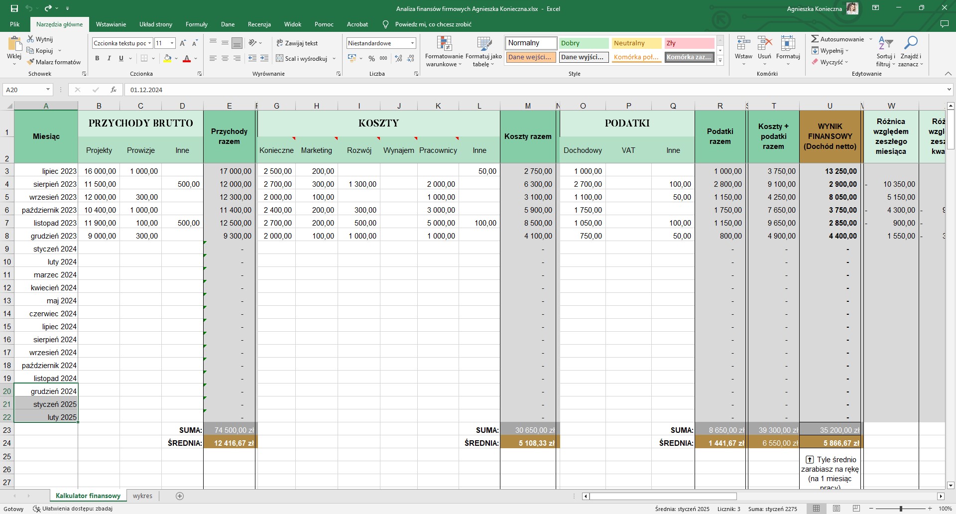 - Arkusz analizy finansów firmowych (arkusz excel + wideo instrukcja)