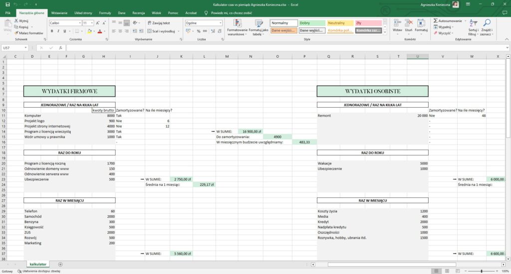 - Kalkulator czas vs. pieniądz (arkusz excel + wideo instrukcja)