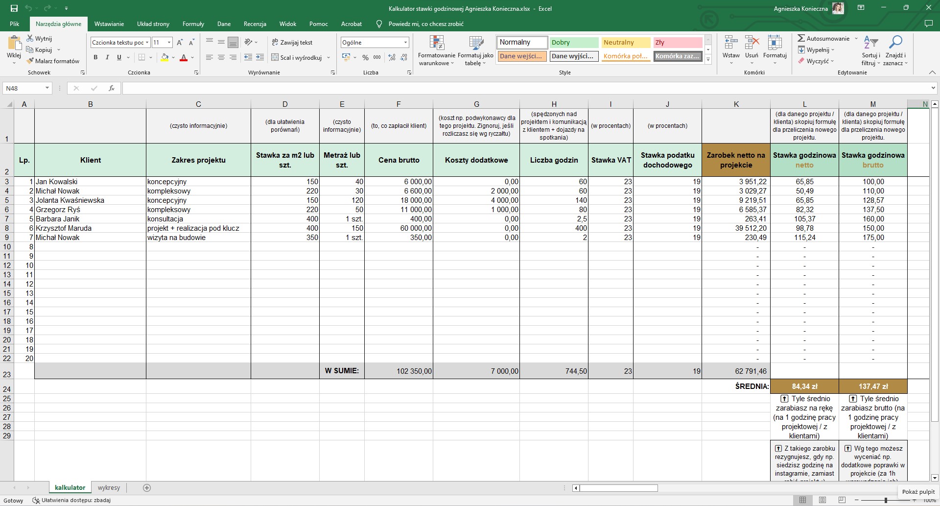 - wyliczyć konkretne stawki godzinowe za konkretne działania, które podasz klientom lub/i wpiszesz do umowy;