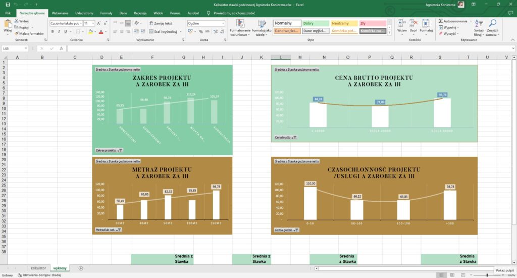 Czyli analiza średniej stawki godzinowej i jej zależności od podstawowych cech projektu (na podstawie danych dotychczasowych projektów). Oraz przeliczenie stawki na miesięczne zarobki.